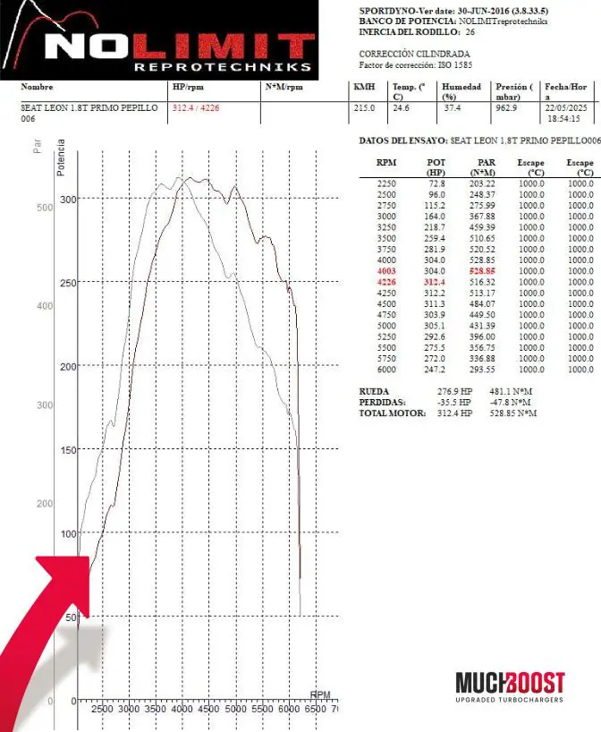 One of our clients decided to use this turbocharger for their project. It produced 312 HP and 528 Nm of torque. The car was also equipped with:
